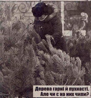 Шалений попит на лісових красунь породжує пропозицію, тож не дивно, що живі ялинки продають на кожному кроці. Справжню зелену красуню в будь-якому районі напередодні свят можна було придбати за 60 гривень і вище. Однак більшість покупців купують все ж таки сосну, яка і стоїть довше, й коштує дешевше. Найдешевшу продавали за 30 гривень. Але в більшості випадків і ті, й інші деревця без... чипів. Мені навіть запропонували причепити самій, якщо заманеться, а чип, кажуть, дадуть, мовляв, є у наявності.