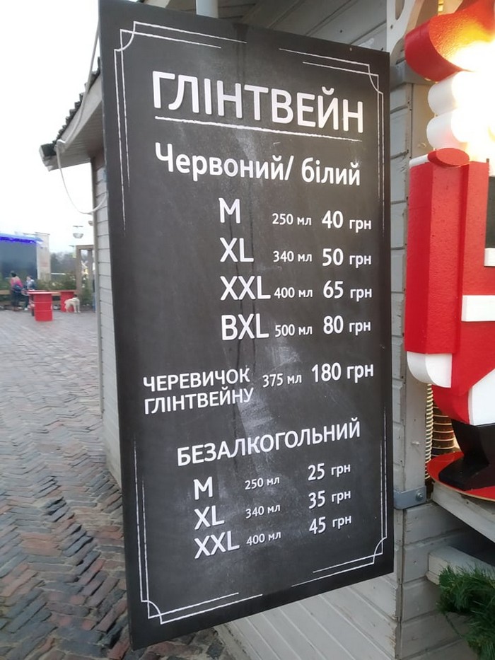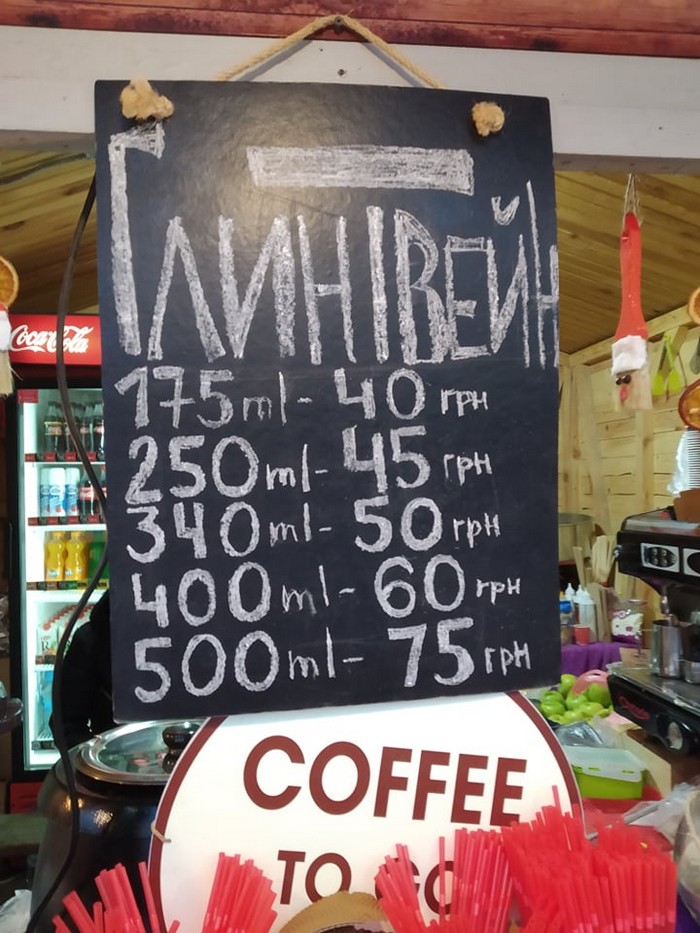- Глинтвейн – 30-45 грн за 250 мл