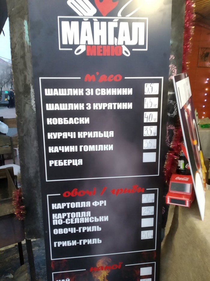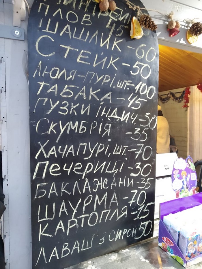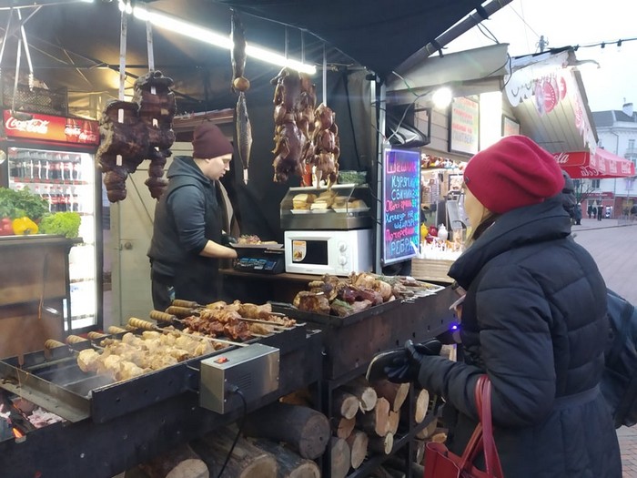 Были в прошлом году на площади с друзьями. Ели шашлык, пили глинтвейн + овощи гриль . 900 грн вышло на 4 человек + дети катались на катке. Короче жесть!!! Пусть ставят свое мясо хоть по 5 грн - больше пойдём!