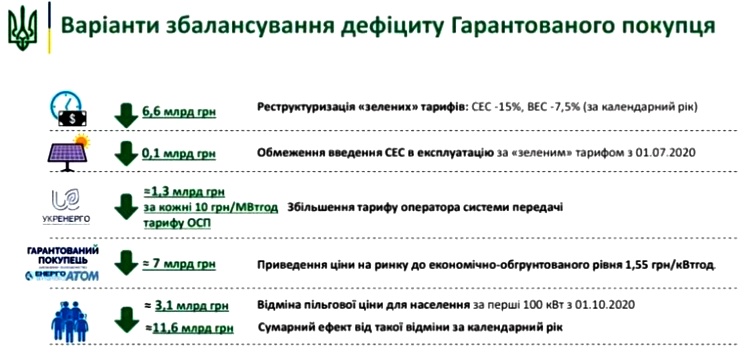 Від обмеження введення СЕС в експлуатацію за "зеленим" тарифом з 1 липня 2020 року держава має отримати 0,1 млрд. грн., а від збільшення тарифу оператора системи передачі — 1,3 млрд. грн за кожні 10 грн/МВтгод тарифу ОСП.