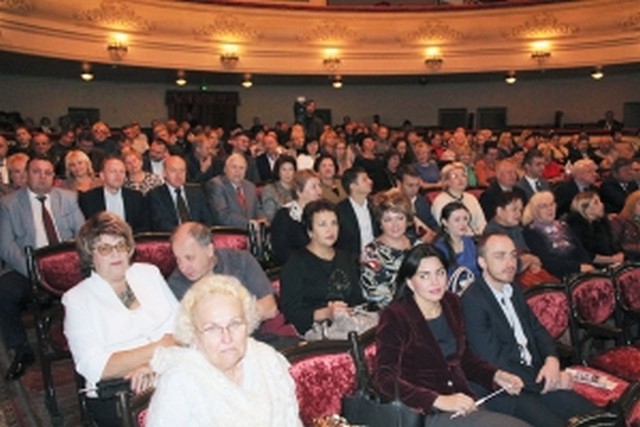 Фото сделано в помещении Драмтеатра, где 5 октября в 2018-м году проходило празднования 70-летнего юбилея Черниговского областного онкодиспансера, слева, во втором ряду - Гисса Гольдина
