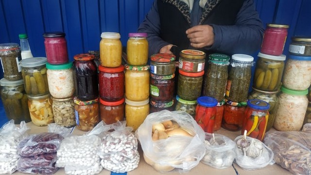На открытых прилавках у жителей города и близлежащих сел свежие молочные продукты, консервированные огурчики, помидоры, капустка, варенье и другие домашние заготовки. Творог сегодня продают в основном по 90 гривен за килограмм, но если «поторговаться», то отдадут за 85-80.