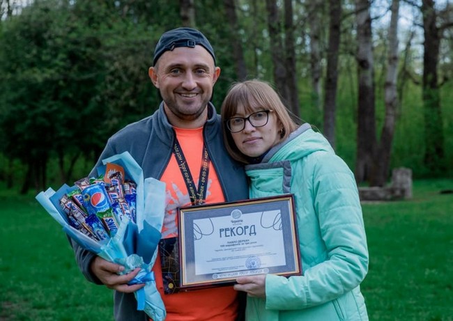 Марафонець Павло Деркач за три роки 102 рази пробіг по 42 км. Тепер він у книзі Рекордів Чернігова. Після забігу 9 травня заступниця начальника управління культури та туризму Чернігівської міської ради Катерина Литвин вручила Павлу відзнаку.