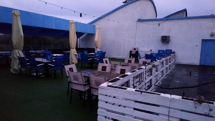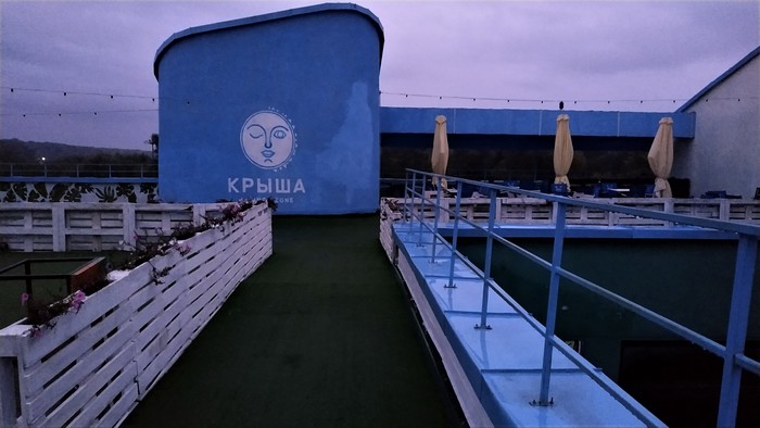 В летний период времени можно отдыхать на втором этаже, в так называемой лаунж-зоне «Крыша». Здесь, на территории 1 200 м2 под открытым небом проходят массовые тематические танцевальные вечеринки. В этой зоне отдыха под навесами от солнца и дождя установлены столики и стулья. С одной стороны видно реку Десна, с другой Екатерининскую церковь. Мы побывали на крыше клуба 19 сентября в воскресенье, было холодно и шел дождь, но летом здесь должно быть очень классно. Если не ошибаемся, предыдущие арендаторы здания Речпорта не устраивали летние площадки на крыше здания.