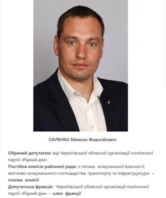 Депутат Чернігівської районної ради від партії «Рідний дім» Микола Силенко написав заяву на дострокове припинення повноважень. На засіданні тридцять четвертої сесії районної ради восьмого скликання цю заяву підтримали.