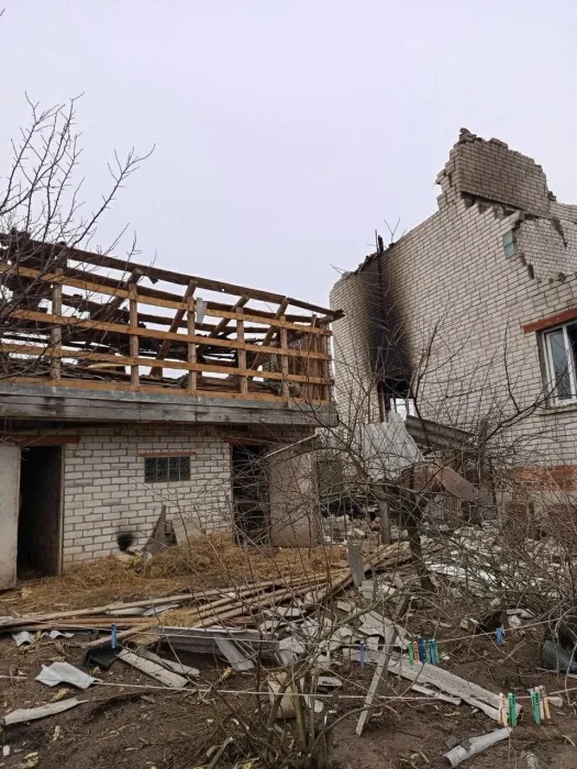 Приходила комісія з громади. Були представники районної військової адміністрації. Будинок під знос. Сьогодні (1 грудня) привозили знайомого архітектора. Бо не знаємо, чи можна відбудувати. Зверху подивився, сказав: «Можна». Зайшов у середину — ні. Каже: «Відновлювати те, що є, — як сидіти на пороховій бочці. Стіни можуть впасти в будь-який момент».