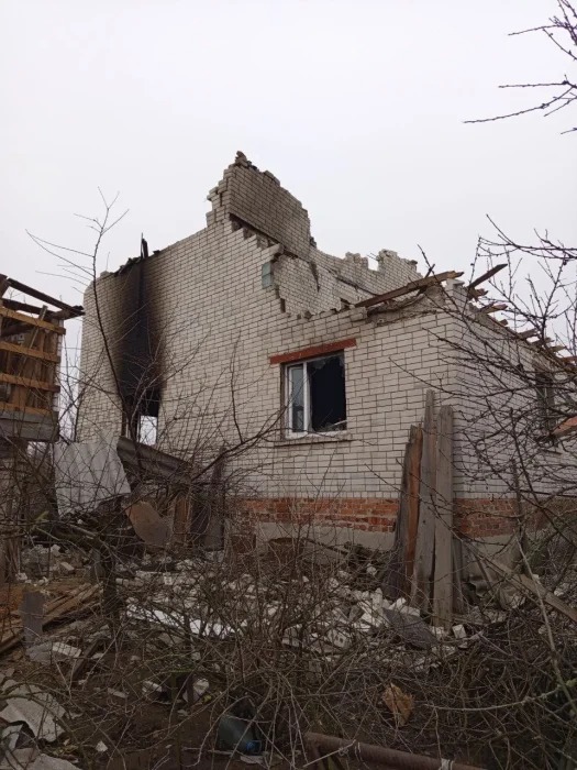 Постраждав і сусід поряд. З іншого боку пуста ділянка. Пошкодило будинок навпроти, через дорогу. Летіли балки-друзки, шматки того шахеда. То був «Герань-2». Поліцейські знайшли хвостову частину. Там був номер.