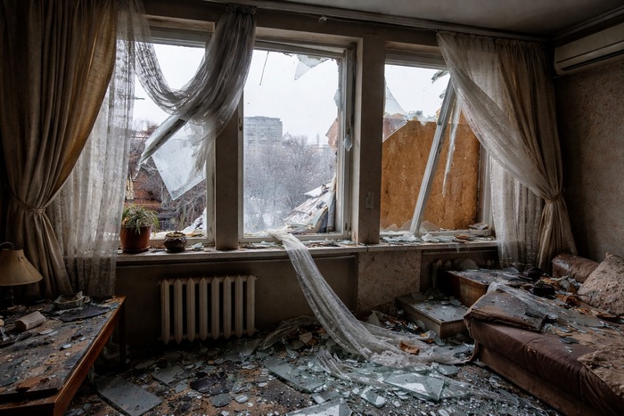 — Тієї ночі я, на диво, спала. Прокинулась від вибуху. На мене осколки не посипалися тільки тому, що на вікнах портьєри. Скло на вікнах було проклеєне широким скотчем навхрест. Вікно в перший же день зашили фанерою працівники громадської організації «Добробат». Усередині плівка, щоб менше пропускало морозного повітря. Мені не холодно. Осколки у квартирі допомагали прибирати люди, які в той день були тут, на місці. Мені головне, коли прийде допомога від міста чи «єВідновлення», засклити вікна. Нові пластикові я не буду встановлювати.