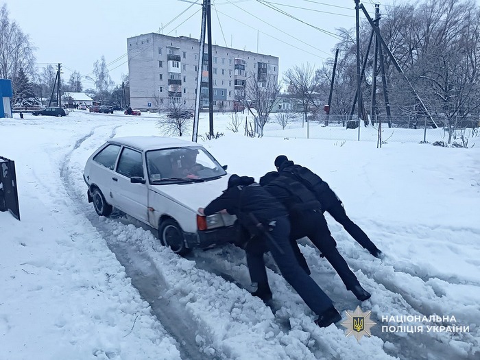 Екіпажі груп реагування патрульної поліції Чернігівщини, поліцейські офіцери громад, дільничні офіцери та поліцейські інших підрозділів у всіх районах області допомагають громадянам долати труднощі: звільняють автівки зі снігової пастки та допомагають безпечно виїхати зі складних ділянок доріг.
