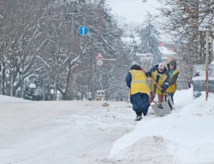 На переходах і тротуарах працюють 8 тракторів нічної зміни та 2 трактори денної. Їм допомагають підчищати ще 40 прибиральників.