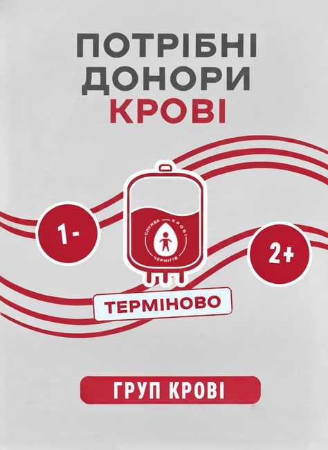 Прийти та здати кров можна за адресою: м. Чернігів, проспект Миру, 44.