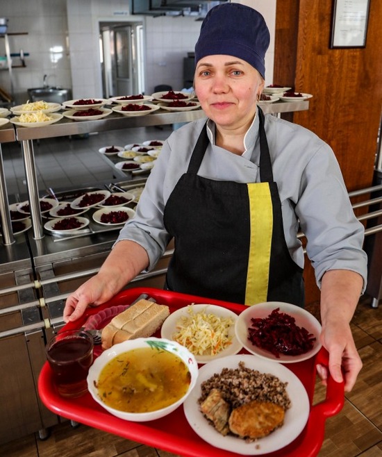 «Різні види м’яса, капуста, гречка, крупи, макарони, помідори, огірки тощо – все своє. Ми самі закриваємо соління та консервацію, – розповідає головна по їдальні. – На обід даємо перше, друге, третє та хліб. Завжди готуємо два перших: варимо суп і борщ, або суп і розсольник. На друге в нас каша – гречка, перловка, ячнева. Або ж картопля варена чи картопля тушкована, котлети, підчеревина, биточки. Все свіже і все своє».
