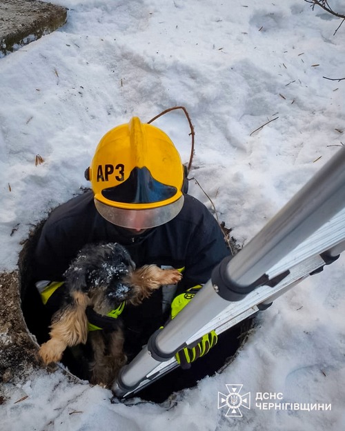 У Чернігові під час прогулянки собака впав у комунікаційну шахту. Стурбовані власники одразу звернулися по допомогу до рятувальників. На місце події оперативно прибули фахівці Аварійно-рятувального загону спеціального призначення. Рятувальники підняли бетонну плиту, що перекривала доступ до шахти, після чого, дотримуючись усіх заходів безпеки, за допомогою висувної драбини спустилися всередину і обережно витягли переляканого собаку на поверхню. На щастя, тварина не постраждала і вже у теплих обіймах своїх господарів.