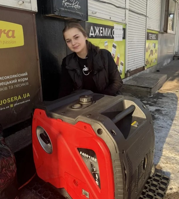 — Учора майже весь день працювали з генератором, — каже Вікторія. — Дали на дві години. Але генератор не вимикали. Бо напруга «скакала». Заводиться він легко, — виходить з кав’ярні «Краш кава». Генератор на чорному гумовому килимку стоїть поряд, біля входу. — Як вмикати, учив власник (Костянтин Петренко. — Авт.). Раніше був інший генератор, з ручним стартером. Треба було шморгати. Цей вмикається кнопкою. І гуде не так гучно.