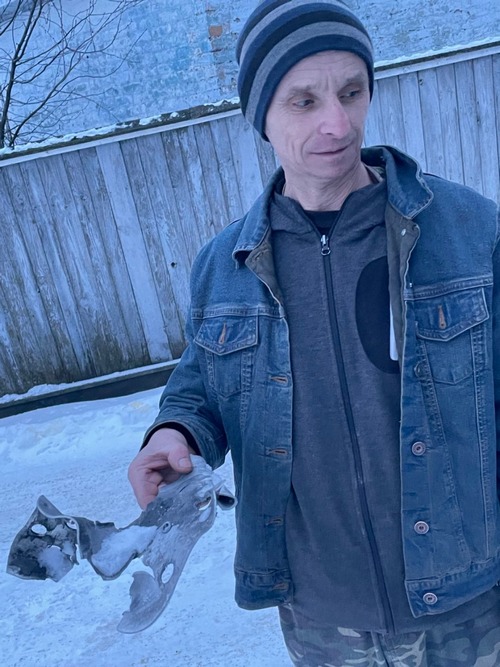 -А в суботу зранку знову повітряна тривога, «бух» та «бух» десь у бік Холявок, - розповідає далі Віктор. - Туди ж і наша авіація полетіла. Я якраз зустрів дружину з електрички, вона пішла вигулювати собаку. Вже й ворота закривав, а тут десь метрів за 200 від нашого будинку як вибухне щось. Скло на сараї, плафон на веранді - на друзки. На подвір’ях, у дворах під парканами, на городах, на болоті – скрізь уламки валяються. Пізніше пройшовся вулицею – вся залізяччям наче засіяна. Видно, наша авіація прицільно вдарила, що той шахед над нашими хатами навсибіч розсипався… Та нам ще пощастило, шкоди небагато наробило, тільки налякало до напівсмерті. У Сергія Пінчука на фронтоні будинку два вікна і двері вхідні вибило. Уламок у грубі застряг. Ще в одного – погріб пошкодило, дошки, якими будинок був оббитий, теж осколками прошило…