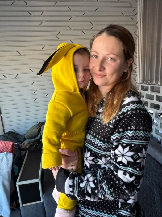 У нас на стелі, вікнах грибок. Доньці Мії рік і місяць, спить в одязі: у штанах, кофті, у двох парах шкарпеток, у теплому костюмі, — каже Катерина. — Дивишся у вікно, деякі сусідні будинки світяться постійно. Ми не проти, щоб у нас вимикали. Але не на сім-вісім годин. В інших будинках є опалення, газ. У нас — тільки бетонна коробка.