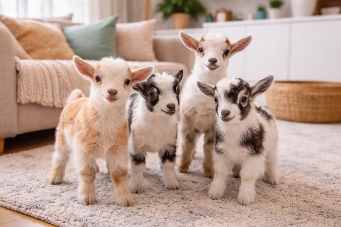 Козликів можна як взяти на відгодівлю, так і на парування залишити. У них хороші гени. Їхній тато коричневий безхвостий, безрогий, безвухий. Мама — чорна безрога, але з вухами. Тож двоє козликів без вушок, а двоє — з вухами. Двоє вже добре п'ють молоко самостійно, інших двох уже майже навчили. Тож тільки бажання та наявність молочка — і все вийде. Звісно, ще їм потрібне тепло, бо просто в хліві замерзнуть. У нас вони в теплі.