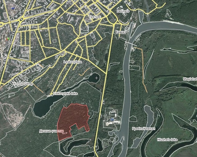 , на плане города такая себе улица Джерельная. Так как она застроена только по одной стороне, то владельцы домов перегородили ее практически возле каждого участка, прихватив себе землю аж до Кольцевой. У кого огород, у кого сад, а у кого и стоянка для фур. Я бы понял, если бы эти участки город им продал или сдал в аренду, а так наглый самозахват без малейшей реакции властей.