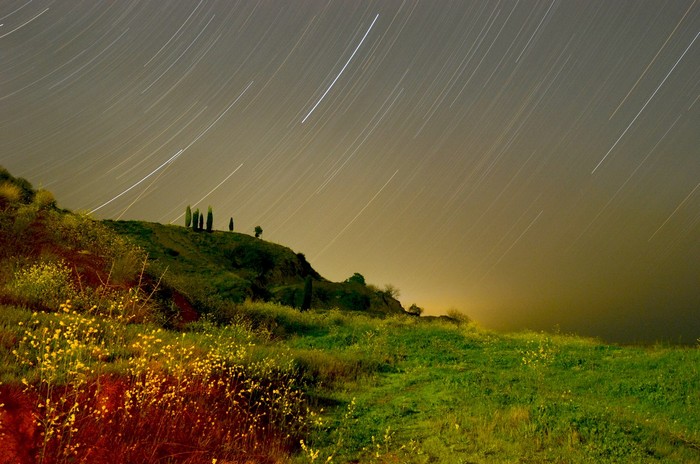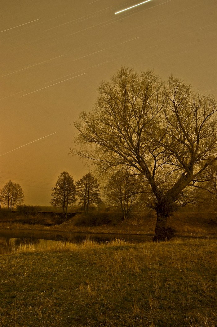 - Вот этот снимок сделан в Яловщине, в ноябре, когда уже стемнело, - показывает фотографию Сергей, на мониторе своего компьютера. На ней изображены сосны, среди которых как бы размытый силуэт человека. Чтобы получить такой эффект, я установил фотоаппарат на штатив и ходил перед ним туда-сюда в течение часа.