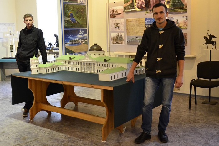 На фото Сергей Тонканов со своим помощником по созданию макетов