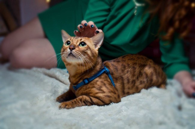 - Во первых — это размеры. Взрослая кошка весит около 3 килограмм, взрослый кот — около 6-7. Даже если их поставить рядом — они в половину больше. Кроме того, эта порода, как я называю, «мочная» - когда гладишь такого кота, чувствуешь каждую мышцу, как будто он в спортзал ходит. Когда кто-то приходит, иногда говорят: «Боже, у тебя такой худой кот!». На самом деле он просто подкачанный и когда его поднимают на руки понимают, что он на самом деле не худой. Бенгальцы очень высоко прыгают, у меня запрыгивают на шкаф. Любят играть, у меня есть специальная палочка с перьями, и когда кот хочет поиграть берет ее в зубы и несет мне.