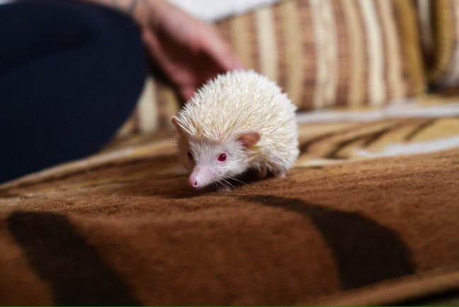 - У меня карликовые домашние ежи, это искусственно выведенная порода. Они не могут жить на улице. У меня один цвета «цинакот», коричнево-горчичный, второй просто серый, а третий альбинос, белый с красным глазами, две ежихи и один еж. Есть очень красивые ежата — я скрещивала альбиноса с цинакотом. У альбиноски глаза красные, у цинакота темные с красным отливом, ежата получились горчично-белые, разноцветные, а глаза взяли от папы, темные.