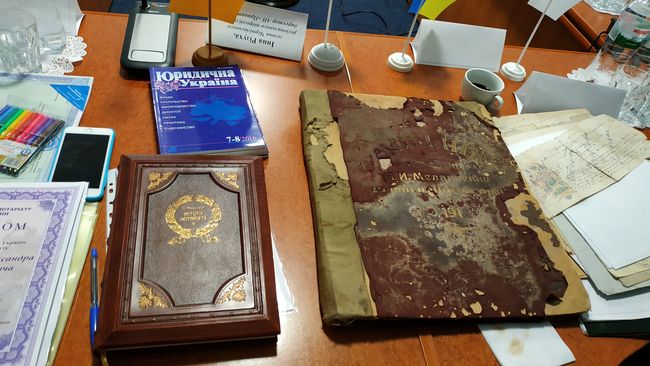 Він спеціально до цієї зустрічі привіз раритетні історичні книги, які вказують на те, як ретельно велися всі записи нотаріусами в Чернігівській області на початку XX-го століття.